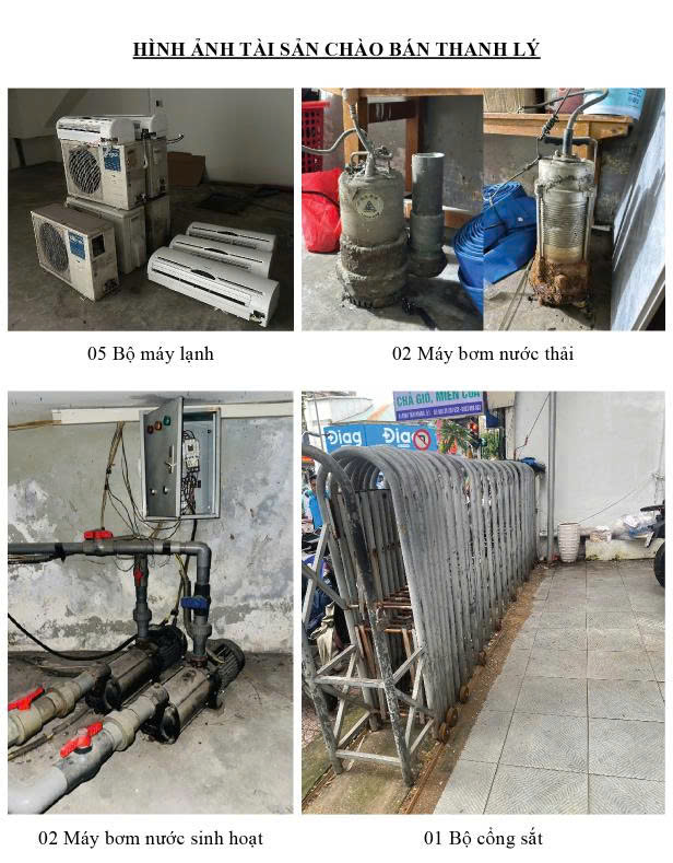 | 3 | Máy bơm nước sinh hoạt | 7.5HP | 02 | Đã qua sử dụng, bị cháy mô tơ. |